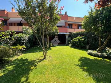 Il giardino privato, curato nei minimi dettagli, è arricchito da piante ornamentali e un affascinante stagnetto con carpe, un angolo di natura che rende l'atmosfera ancora più speciale.