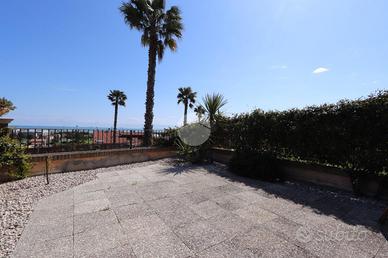 Il valore aggiunto di questo primo livello è sicuramente lo spazio esterno: un giardino pavimentato di circa 35 mq completamente VISTA MARE.