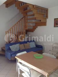 Grimaldi Immobiliare propone in vendita ampio appartamento indipendente con giardino in ottima posizione vicino ai servizi, al centro e a soli 200m dal lungo mare. L'immobile e un terra-cielo disposto su 3 livelli con giardino esclusivo di circa 90 mq su 3 lati (modello villetta a schiera e 2 posti auto esterni.