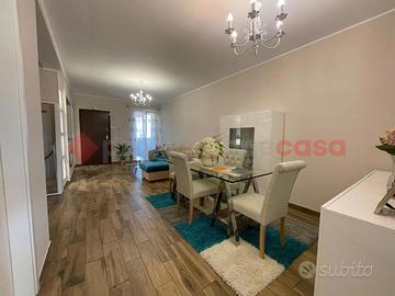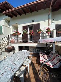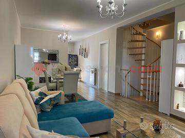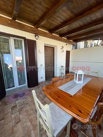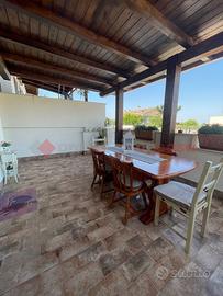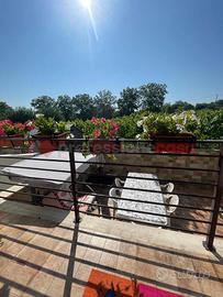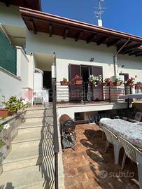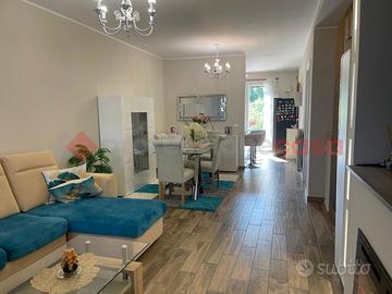 Zona Acqua Acetosa - Villino a schiera bilivello: sala con cucina, 2 camere, disimpegno e 3 bagni più ampia zona open space mansardata con servizio e terrazzino. Veranda di 20 mq coperta con travi in legno e giardino mattonato di 55 mq avanti e 20 mq retro. L'immobile si trova a circa 2 km da Via dei Laghi, da Via Anagnina, dalle stazioni ferroviarie di Sassone e Pantanella, dall'ufficio postale e dalla banca e circa 8 km dalla stazione metro A Anagnina e 1 km da farmacie e supermercato.
