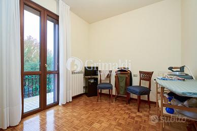 La casa ha un ingresso esclusivo su di un atrio signorile che conduce all'abitazione la quale si sviluppa su più livelli e offre ambienti luminosi, funzionali e dal design contemporaneo. La soluzione si compone di ampio soggiorno con cucina abitabile con altezze elevate che inonda lo spazio di luce naturale, il piano è completo di un bagno. Il giardino è comodamente raggiungibile sia dal soggiorno che dalla cucina, spazio esterno ideale per pranzi e cene in compagnia in totale relax e privacy. Tramite scala interna si accede al primo piano composto da tre camere tutte con il balcone, un altro bagno con doccia e un ripostiglio. All'ultimo piano abbiamo un affascinante sottotetto, parte integrante di una villetta di prestigio, rappresenta una rara opportunità per chi cerca uno spazio esclusivo, ricco di potenziale e adatto a molteplici usi. Grazie alla sua disposizione open space è un luogo ideale per chi desidera indipendenza, comfort e stile, senza rinunciare alla bellezza e alla tranquillità di un contesto residenziale raffinato.