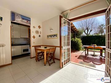 Rif:V860 (2918935_1) - All'interno dell'esclusivo residence di Colle Piuccio, proponiamo in vendita un delizioso villino a schiera dotato di generosi e curatissimi spazi esterni. L'accesso alla proprietà avviene tramite cancello carrabile, che consente di entrare comodamente nel posto auto interno, garantendo praticità e sicurezza. La casa, in buone condizioni e pronta da abitare, si sviluppa su due livelli fuori terra. Al piano terra troviamo un luminoso soggiorno con uscita diretta su patio e giardino, un cucinotto e un bagno di servizio. Al primo piano si collocano due camere da letto, di cui la matrimoniale con balcone, e un bagno completo. L'immobile è inoltre dotato di inferriate di sicurezza su tutte le finestre. Il cuore dell'abitazione è rappresentato dall'ampio patio, in parte coperto, perfetto per essere vissuto in ogni stagione: uno spazio ideale per pranzi all'aperto, cene estive e momenti conviviali con amici e famiglia. Da qui si apre lo splendido giardino esposto a Sud/Ovest, soleggiato e perfettamente mantenuto, arricchito da piante ornamentali che creano un'atmosfera riservata e rilassante. Un'oasi privata dove godere della tranquillità, prendere il sole o organizzare piacevoli momenti di relax all'aria aperta. Completa la zona esterna una comoda doccia esterna, particolarmente funzionale durante la bella stagione. Il residence offre un contesto riservato e curato, con un attrezzato circolo che dispone di campi da padel, beach volley e punto ristoro per i soci. Una soluzione ideale per chi desidera vivere in un ambiente tranquillo e protetto, senza rinunciare al privilegio di ampi spazi esterni da vivere ogni giorno. - Classe: F - IPE: 120.07 kWh/mq anno