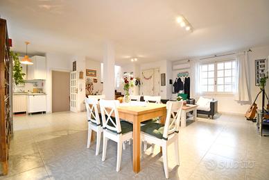 In una delle zone più apprezzate di Quartu Sant'Elena, a pochi passi dal Parco Naturale Regionale Molentargius e a meno di un chilometro in linea d'aria dalla splendida spiaggia del Poetto, proponiamo in vendita una villetta a schiera su tre livelli inserita in un contesto riservato e silenzioso, all'interno di una strada chiusa frequentata quasi esclusivamente dai residenti. Una soluzione ideale per chi desidera vivere tra mare e natura senza rinunciare alla comodità dei servizi. L'immobile gode di una doppia esposizione sud-est / nord-ovest che garantisce luminosità durante tutto l'arco della giornata e una piacevole ventilazione naturale. L'accesso avviene attraverso il cortile frontale, dotato di ingresso carrabile e pedonale separati, che accompagna all'ingresso dell'abitazione. Varcando la soglia, si viene accolti da un ampio e luminoso doppio soggiorno con cucina a vista, uno spazio conviviale pensato per la vita quotidiana e per momenti di condivisione. Da qui si accede direttamente al cortile retrostante, un angolo di tranquillità che si affaccia verso il verde del Parco di Molentargius, perfetto per rilassarsi all'aperto in totale privacy. Scendendo al piano interrato troviamo un grande ambiente versatile, ideale come zona relax o taverna, impreziosito dalla presenza del caminetto che rende l'atmosfera calda e accogliente. Il piano è completato da una zona lavatoio e da due accessi indipendenti che conducono sia al cortile frontale che a quello posteriore, rendendo gli spazi ancora più funzionali. La zona notte, situata al primo piano, è composta da tre camere da letto ben distribuite, un bagno e una zona di servizio con accesso diretto dalla camera matrimoniale, perfetta come cabina armadio o spazio privato da personalizzare secondo le proprie esigenze. Uno dei veri punti di forza dell'abitazione è il lastrico solare panoramico: dal balcone di una delle camere, tramite una scala a chiocciola, si accede al terrazzo sovrastante da cui si apre una vista