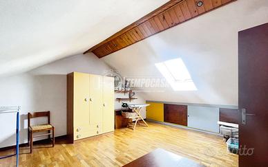 L'ingresso dell'abitazione si trova al piano interrato, dove è presente anche una comoda cantina. Al piano terra si sviluppa la zona giorno, composta da un ampio soggiorno, una cucina abitabile e un primo bagno. Da questo livello si accede direttamente a due giardini, uno situato nella parte anteriore e l'altro sul retro, offrendo così un piacevole spazio verde su entrambi i lati della casa. Il primo piano ospita la zona notte, composta da tre camere da letto, un secondo bagno e un pratico ripostiglio. Salendo ulteriormente, al piano sottotetto, si trova una splendida mansarda con accesso diretto a un ampio terrazzo panoramico, ideale per momenti di relax all'aperto. A completare la proprietà vi è un comodo box auto di 17 mq.
