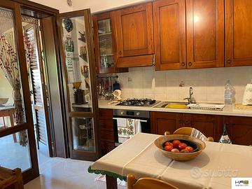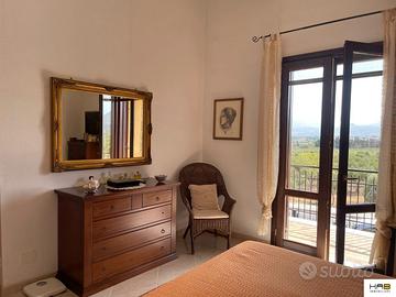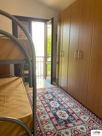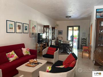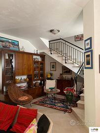 Salendo al piano superiore, troviamo un disimpegno che conduce a tre camere da letto, di cui una matrimoniale, e un servizio con doccia. La doppia esposizione parallela garantisce un'ottima luminosità e ventilazione in ogni ambiente. La villa è in ottime condizioni e dotata di due condizionatori nella zona giorno, perfetti per affrontare le calde giornate estive.