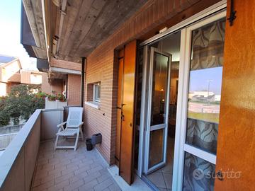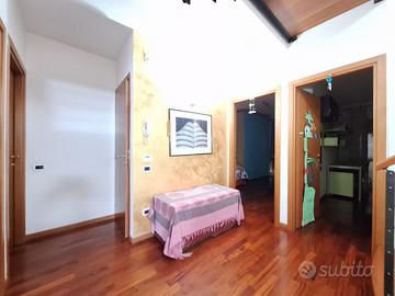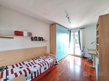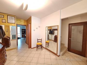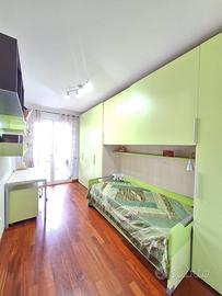 P.1°: ampio disimpegno, 1 camera da letto matrimoniale con terrazzo, 2 camere da letto singole di generose dimensioni comunicanti con un comodo terrazzo, ripostiglio, grande bagno dotato di vasca e box doccia.