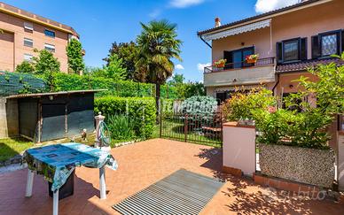 Il giardino, curato e disposto sui tre lati liberi della casa, è impreziosito da un patio esterno coperto, perfetto per vivere momenti di relax o organizzare piacevoli cene all'aperto.