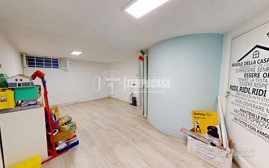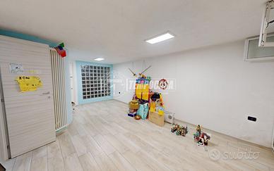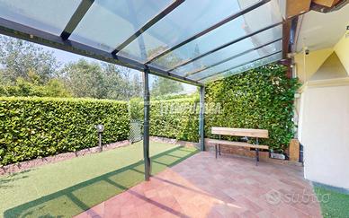 INTERNO: L'abitazione è cosi composta, ingresso nella zona giorno, locale di generosissime metrature dove si può creare nello stesso ambiente, la zona living posizionando il divano e creando una parete attrezzata dove poter mettere il televisore ed oggetti vari, mentre la parte opposta creare la zona pranza/cena con la possibilità di accedere direttamente in giardino, la cucina abitabile è fornita di porta finestra per accedere al giardino, la parte iniziale del giardino è coperta dal portico dove sotto si può adagiare il tavolo per poter rimanere coperti nelle ore più calde oppure riparati dalla pioggia, l'altra metà del giardino rimane scoperta, in oltre dal giardino privato accediamo al giardino condominiale senza dover uscire di casa; infine sempre al piano terra troviamo il primo bagno.