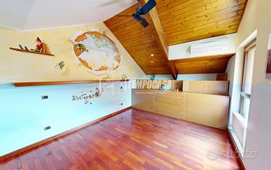 Al piano primo abbiamo la zona notte composta dalla cameretta dove poter mettere comodamente 2 letti e l'armadiatura, la camera matrimoniale con soppalco dotata di balcone e la cabina armadio rifinita in maniera ottimale e con ottimo gusto, inoltre il soppalco è illuminato dai lucernai, ed in fine abbiamo il secondo bagno.