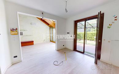 A Cesano Maderno completamente immersa nel verde del parco delle Groane, proponiamo villa a schiera di 176 mq con giardino e portico, taverna, lavanderia, box doppio e posto auto.