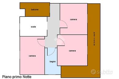 - piano primo: due camere matrimoniali, cameretta, bagno e due balconi.