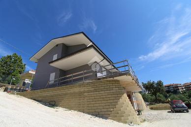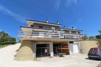 Nella prima periferia di Acquaviva Picena, disponiamo di villetta a schiera ubicata in posizione assolata e caratterizzata da una splendida visuale delle colline, delle montagne e del mare. Il fabbricato si sviluppa su tre livelli così composti: - piano interrato: garage, cantina e locale ripostiglio - piano terra: ingresso, soggiorno ampio con cucina a vista, terrazzo, bagno e studio - piano primo: due camere matrimoniali, cameretta, bagno e due balconi. La villetta ha una dimensione di 240 mq circa e si presenta internamente allo stato grezzo, mentre esternamente è stata completata la facciata e il tetto. Per informazioni e maggiori dettagli rivolgersi in ufficio