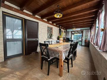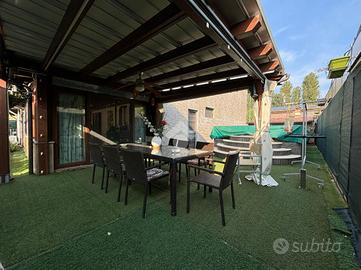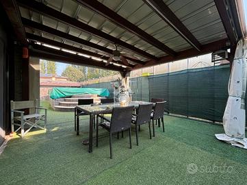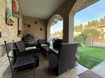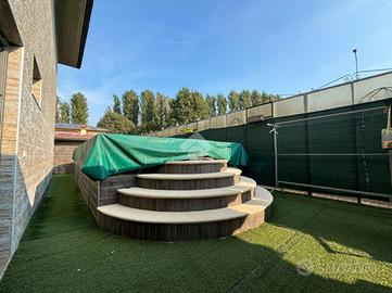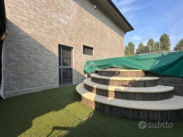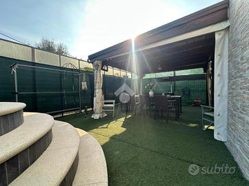 Fiore all'occhiello di questa soluzione è lo spazio esterno di 168 mq. L'area esterna è stata sapientemente sfruttata dagli attuali proprietari, con l'aggiunta di un pergolato di 25 mq, piscina in muratura di 25 mq e deposito attrezzi di 9 mq.