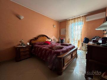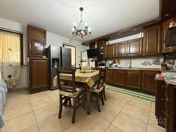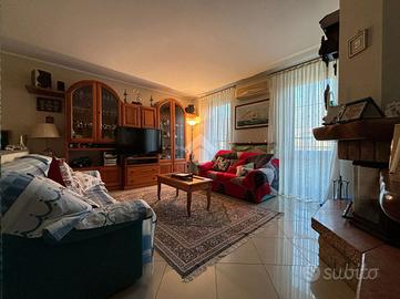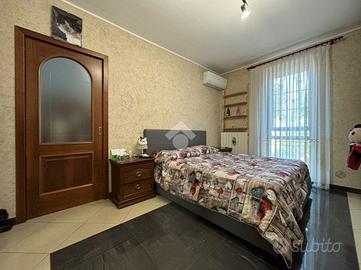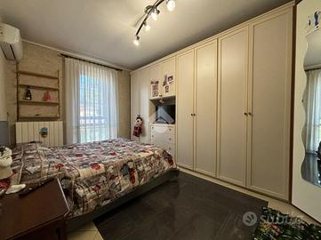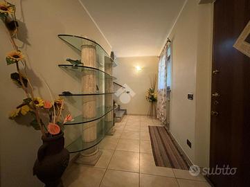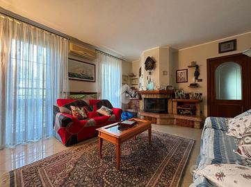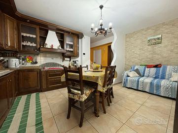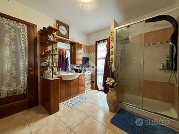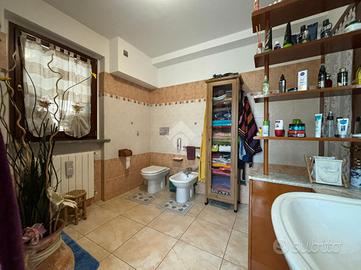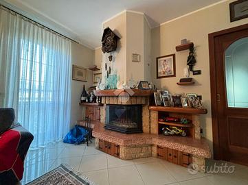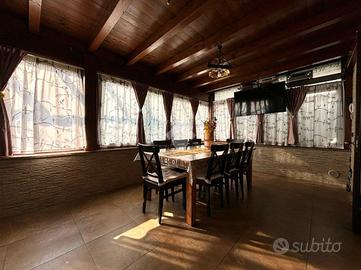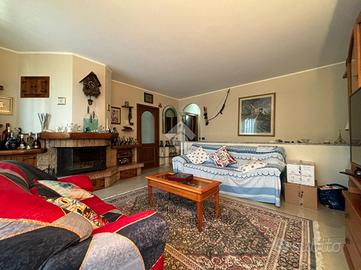L'abitazione, di 155 mq, si sviluppa su due livelli. Al piano terra troviamo l'ingresso, il soggiorno con angolo cottura, lavanderia e bagno con doccia. Dal soggiorno si ha accesso ad un portico chiuso di 26 mq, dotato di aria condizionata e riscaldato da stufa. La zona notte si trova al piano primo, suddiviso in quattro camere, di cui una con camino e ad oggi usata come seconda area relax, e bagno con vasca. Dalla stanza relax si ha accesso al balcone di 4,60 mq.