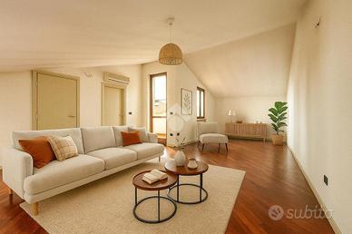Al piano primo troviamo un'ampia mansarda con loggia coperta e bagno finestrato.