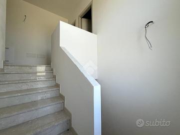 Villa a schiera di testa disposta su più livelli, caratterizzata da spazi interni luminosi e ben distribuiti e da un giardino privato che circonda la casa su tre lati, offrendo riservatezza e la possibilità di godere di piacevoli momenti all'aperto. La proprietà dispone inoltre di un box auto di pertinenza con accesso diretto all'abitazione. Al piano terra si sviluppa la zona giorno, composta da un ampio e luminoso soggiorno, ideale per accogliere familiari e ospiti, e da una cucina abitabile separata, perfetta per chi ama vivere la convivialità degli spazi. Completa il livello un bagno di servizio. Il primo piano ospita la zona notte, composta da tre camere da letto: una camera matrimoniale con ampio balcone, una camera doppia e una camera singola, ideali per una famiglia o per chi desidera ricavare uno studio o una stanza ospiti. Al piano seminterrato si trova un'ampia zona finestrata, versatile e facilmente personalizzabile secondo le proprie esigenze; perfetta come taverna, sala hobby, studio o palestra privata -- oltre al box auto, collegato internamente all'abitazione per un comodo accesso diretto.