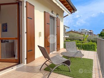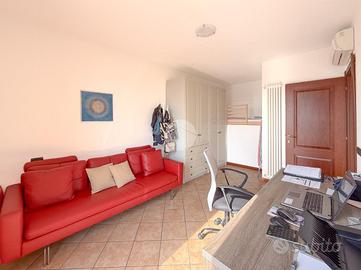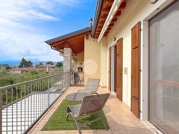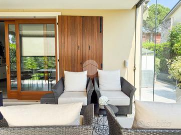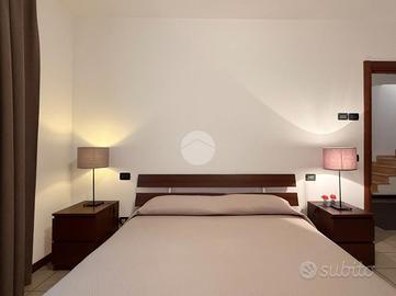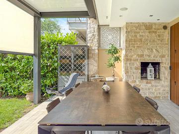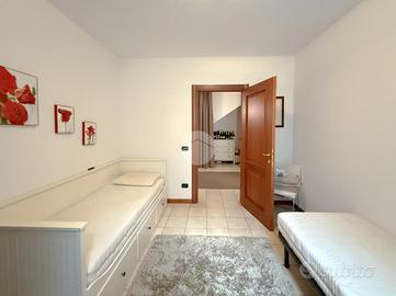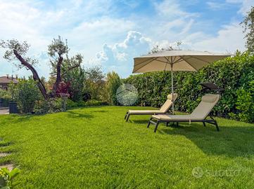 BARDOLINO: a pochi passi dal centro paese proponiamo interessante soluzione di villa a schiera d'angolo con giardino privato di circa 200 mq inserita in contesto di residence con piscina. L'abitazione che gode di un ingresso indipendente pedonale e carraio si sviluppa su quattro livelli. Al piano interrato troviamo due ampie camere da letto finestrate, un bagno e una taverna; al piano primo al quale si accede per mezzo di una comoda scala troviamo un bagno finestrato e la zona giorno con ampia vetrata che conduce ad un patio esterno protetto da vetrate scorrevoli direttamente sul giardino, perfettamente curato e piantumato; al piano primo due grandi camere da letto con uscita sul grande terrazzo e un bagno con finestra; al piano secondo e ultimo una grande mansarda adibita a camera da letto con un ulteriore bagno. A completare la proprietà due garage di cui uno direttamente collegato all' abitazione e un posto auto esterno. Soluzione ideale sia come prima casa viste le grandi dimensioni sia come casa vacanze.