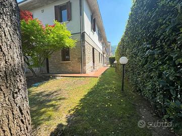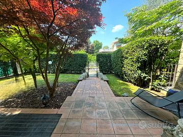 Il piano terra è composto da ingresso con accogliente zona giorno, cucina abitabile con ripostiglio e un piccolo bagno di servizio. Cucina e soggiorno hanno accesso diretto al giardino esclusivo.