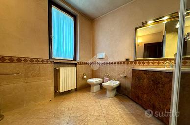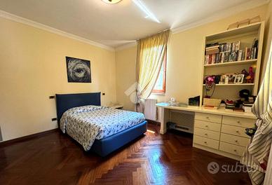 Al primo piano si sviluppa la zona notte con due camere matrimoniali, di cui una con sfogo esterno, una camera doppia, un disimpegno con armadio a muro. A completamento del primo piano troviamo due bagni di comoda metratura, finestrati dotati di doccia.