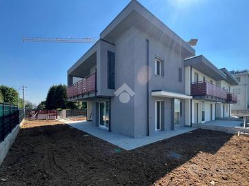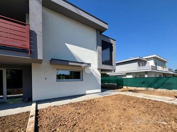 A Calusco d'Adda, in una zona residenziale tranquilla e ben servita, proponiamo in vendita una splendida villetta di testa di nuova costruzione in classe energetica A4, con possibilità di scegliere le finiture interne secondo il proprio gusto. Libera su tre lati e circondata da un ampio giardino privato, questa abitazione offre l'ingresso indipendente e spazi rari da trovare sul mercato. Al piano terra si sviluppa una luminosissima e ampia zona giorno, ideale per accogliere ospiti e vivere la quotidianità in un ambiente aperto e funzionale, con un comodo bagno di servizio. Il piano interrato ospita una grande taverna perfetta per momenti conviviali o di relax, una pratica lavanderia e un box doppio in larghezza dalle dimensioni eccezionali. Al primo piano troviamo tre camere matrimoniali di metrature generosissime, di cui una impreziosita da una cabina armadio che rappresenta il sogno di molti, oltre a un elegante bagno e a un terrazzo vivibile. Una casa moderna, efficiente e spaziosa, pensata per garantire comfort e qualità della vita, in una posizione comoda a tutti i principali servizi.