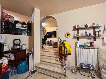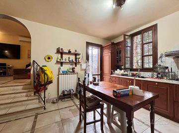Dalla cucina si accede al piano seminterrato dove si sviluppa la cantina attualmente adibita a taverna, attrezzata con un'ulteriore cucina con camino e forno a legna. Anche da questo livello è possibile raggiungere il giardino tramite una comoda scala esterna. Nel piano cantina è inoltre presente una stanza adibita a zona lavanderia.