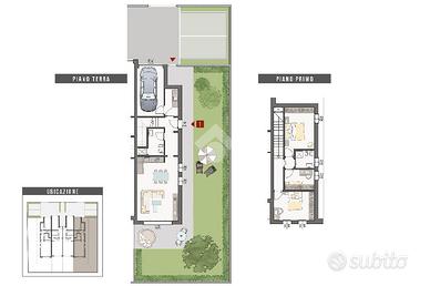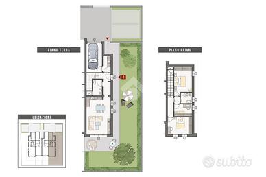 L'abitazione si sviluppa su soli due livelli offrendo spazi ben organizzati e funzionali. Al piano terra, oltre il soggiorno con angolo cottura che si affaccia sul generoso giardino privato di circa 130 mq., ideale per momenti di relax all'aperto, sono presenti il bagno, la lavanderia e il garage per un'auto, accessibile anche internamente. Al piano superiore, la zona notte comprende le tre camere da letto e il bagno.