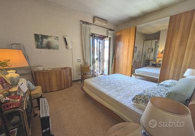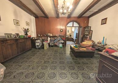 Entrando in casa ci colpisce la divisione degli ambienti,tipicamente degli anni 70: al piano terra abbiamo un ampio ingresso di rappresentanza, la cucina abitabile, un bagno, una ampia sala da pranzo, un secondo salone con camino e soffitto con le travi in legno. Tutti gli ambienti affacciano e/o escono sul giardino.