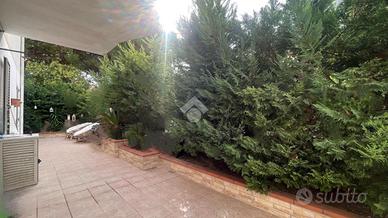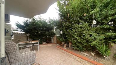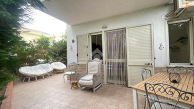 Porzione di villetta a schiera posta al piano terra, estesa su un unico livello con corte esclusiva di proprietà pavimentata di 100 mq, arredata, completa di condizionatori e caratterizzata da tre lati di esposizione.