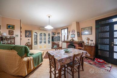 In un contesto residenziale riservato e tranquillo, proponiamo in vendita villa a schiera d'angolo, ideale per chi desidera comfort, funzionalità e spazi ben distribuiti. L'abitazione si distingue per l'ottima luminosità e la razionale disposizione degli ambienti. Al piano terra troviamo una zona giorno accogliente, composta da soggiorno con camino, cucina abitabile con accesso diretto al giardino privato, perfetto per pranzi all'aperto e momenti di convivialità. Completa il piano una comoda stanza multiuso e un bagno di servizio. La zona notte, al piano superiore, ospita due ampie camere matrimoniali, un bagno spazioso con vasca e un terrazzo ad uso esclusivo. All'esterno, il giardino privato rappresenta uno spazio ideale per il relax. Completano la proprietà un garage doppio e un pratico locale seminterrato completo di un'ulteriore stanza per uso lavanderia. L'immobile è stato recentemente oggetto di interventi di riqualificazione, tra cui: