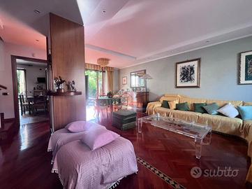 Nella prestigiosa zona Cavoni, tra le più esclusive e richieste di Frosinone, proponiamo in vendita una splendida villa a schiera angolare, incorniciata da un giardino che la circonda su tre lati. Gli alberi ad alto fusto donano ombra e riservatezza, creando lo scenario perfetto per colazioni all'aperto, giochi dei bambini o lunghe serate estive con gli amici. Al piano terra l'ingresso si apre su un salone ampio e luminoso, che dialoga con la corte pavimentata e con il verde circostante. Accanto, una cucina abitabile che diventa cuore pulsante della quotidianità, con l'accesso diretto al giardino per vivere appieno gli spazi dentro e fuori casa. La zona notte, al piano superiore, accoglie una camera matrimoniale con bagno privato, una cameretta, uno studio e un ulteriore bagno, mentre la mansarda regala ambienti generosi e versatili, perfetti come rifugio creativo o spazio di relax. Il piano seminterrato custodisce invece l'anima più conviviale della villa: una taverna calda e accogliente, impreziosita dal camino in mattoni di San Pietro e da una seconda cucina, pensata per pranzi in famiglia e serate con amici, in un'atmosfera intima e autentica. A completare il livello, una pratica lavanderia e una cantina. Rifinita con parquet in tutte le stanze, porte e rivestimenti in legno e dettagli di pregio, questa villa offre il perfetto equilibrio tra comfort moderno e charme senza tempo. Una residenza capace di unire eleganza e funzionalità, ideale per chi cerca il privilegio di vivere in un contesto esclusivo, senza rinunciare alla vicinanza ai principali servizi e collegamenti. Un luogo dove ogni giorno può trasformarsi in un'esperienza di bellezza e armonia.