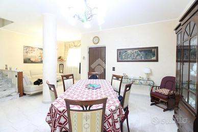 MACERATA CAMPANIA: In zona residenziale proponiamo in vendita una villetta a schiera capofila distribuita su quattro livelli con corte esclusiva alla quale si accede anche attraverso il passo carrabile dal viale condominiale. Il piano rialzato destinato alla zona giorno è composto da salone a vista con predisposizione per il camino, cucinotto dal quale si accede alla corte privata e bagno; il primo piano è composto da tre ampie camere da letto e bagno; il piano sottotetto è composto da un unico ambiente con bagno ed infine il piano seminterrato, con destinazione deposito, è composto da un unico grande ambiente con cucina e ripostiglio. Incluso nel prezzo ci sono i mobili cucina al piano seminterrato, due climatizzatori, protezioni in ferro, le tende da sole ed altri accessori.