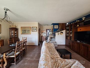 L'ingresso al piano rialzato conduce nell'ampio e luminoso soggiorno, ambiente accogliente e ideale per la vita quotidiana.