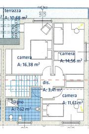 L'immobile disposto su due livelli, al piano terra ingresso su soggiorno con angolo cottura, di dimensioni generose (37,25 mq) con accesso diretto alla loggia e bagno finestrato. Con una comoda scala in muratura si accede al piano seconodo, due camere matrimoniali, una camera doppia, un bagno finestrato ed un terrazzo di (10,68 mq).
