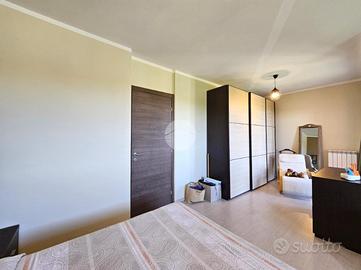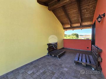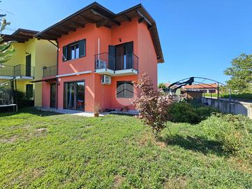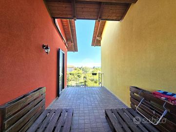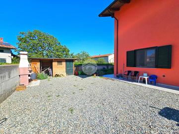 MAZZE' - Frazione Casale: Villetta a schiera libera su tre lati di recente costruzione con giardino e cortile privato. L'abitazione si sviluppa su due livelli collegati tramite una comoda scala interna. Il piano terra è composto da un soggiorno spazioso, cucina, bagno con doccia e ripostiglio ad uso dispensa con attacco per la lavatrice. Il piano superiore è costituito da una camera matrimoniale con accesso sul terrazzo coperto di 18 mq. , una cameretta con balcone e un secondo bagno con doccia. Tutti gli infissi della casa sono in pvc con doppi vetri e gelosie. Il riscaldamento è autonomo, alimentato a GPL tramite radiatori e condizionatori presenti su entrambi i livelli. Completa l'unità immobiliare un box auto di 20 mq.
