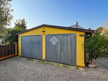 Conclude la soluzione residenziale lo scoperto su tre lati, doppio garage ed una casetta in legno.