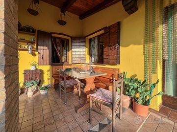 La residenza è formata al piano terra di ingresso, al quale si accede tramite il portico di circa 20 mq, vasta zona living, cucina abitabile, un bagno finestrato avente vasca e doccia, ed una lavanderia dal quale si può accedere direttamente al giardino.