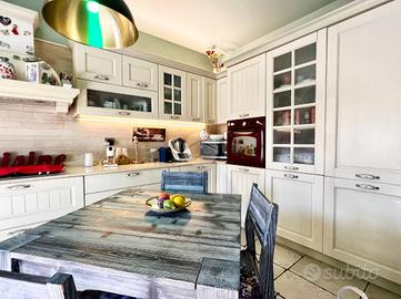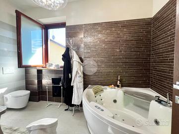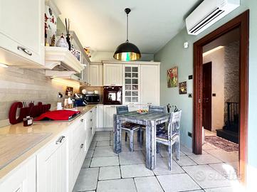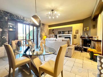 L'immobile, situato all'interno del complesso residenziale denominato "Tenuta dei Conti Mazzucchi", rappresenta un connubio tra storia, eleganza e comfort. L'edificio originario risale al Settecento ed è stato completamente recuperato e valorizzato nel 2012. L'ingresso è indipendente dal giardino privato, che conduce al portoncino blindato e a un comodo disimpegno. Al piano terra si trovano una cucina abitabile con accesso diretto al giardino d'ingresso e un ampio soggiorno con camino, molto luminoso grazie alla porta finestra che affaccia sul giardino retrostante, ideale come zona relax o per pranzi all'aperto. Completano il piano un ripostiglio e un bagno finestrato con box doccia. La zona notte al piano superiore comprende tre camere da letto, un bagno finestrato con vasca idromassaggio e un secondo bagno completo di doccia. Salendo ulteriormente si accede alla mansarda, oggi utilizzata come spazio relax e zona studio. L'abitazione è stata ristrutturata nel 2016 con materiali di pregio e particolare attenzione al comfort: riscaldamento autonomo a pavimento, caldaia a condensazione, pannelli solari, impianto d'allarme e climatizzazione caldo/freddo in tutti gli ambienti. Completano la proprietà due box auto.