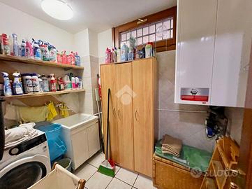 Al piano seminterrato è presente un ampia taverna con camino e cucina, un bagno con doccia, una lavanderia ed una cantina