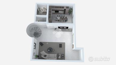 Al piano seminterrato vi è la zona taverna open space collegata direttamente al box doppio.