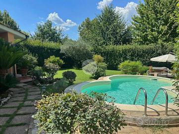Nepi - Residence Belvedere Lidya Villa angolare ristrutturata con piscina e giardino di 200 mq All'interno del Residence Belvedere Lidya proponiamo in vendita una splendida villa angolare completamente ristrutturata, impreziosita da piscina interrata, jacuzzi e ampio giardino privato di circa 200 mq. Varcando la porta d'ingresso veniamo accolti da un luminoso e spazioso salone con camino, perfetto per i momenti di relax in famiglia. La zona giorno è completata da una cucina abitabile con accesso diretto al giardino sul retro e da un bagno con doccia. Salendo le comode scale accediamo alla zona notte composta da due ampie camere da letto entrambe con balcone. Una delle camere dispone inoltre di accesso diretto alla mansarda, attualmente utilizzata come palestra. A servizio del piano troviamo un secondo bagno con doccia. L'immobile è stato rifinito con grande cura nei dettagli ed è dotato di impianto di allarme perimetrale e infissi di ottima qualità con doppi vetri, caratteristiche che garantiscono comfort e sicurezza. All'esterno troviamo un ampio e curato giardino di circa 200 mq, uno spazio ideale per vivere momenti di relax all'aria aperta, completo di piscina interrata, jacuzzi e un locale attualmente adibito a rimessa attrezzi. Grazie alla sua disposizione e al contesto tranquillo, questa proprietà si presta perfettamente sia come abitazione principale sia come casa per trascorrere piacevoli weekend lontano dal contesto urbano. Contattaci subito per maggiori informazioni o per prenotare una visita e scoprire di persona questa splendida opportunità.