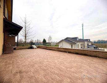 Lo scoperto su tre lati assicura indipendenza e ariosità, mentre la tettoia esterna di circa 50 mq, rappresenta un importante valore aggiunto, perfetta sia come area coperta per vivere l'esterno in ogni stagione, sia come comodo spazio per il parcheggio delle auto.