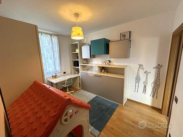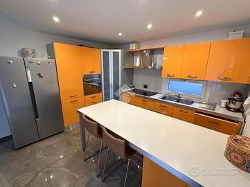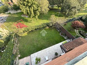 PAULLO Nelle immediate vicinanze della nuova zona commerciale, a pochi passi dal parco San Tarcisio, da tutti i servizi principali, dalla fermata dell'autobus che permette un collegamento diretto verso San Donato/Milano, Lodi e Crema. Proprietà inserita in contesto residenziale di sole ville, edificata nel 1993. Villa a schiera laterale con giardino privato, sviluppata su una metratura complessiva pari a 160 mq articolata su due piani abitativi oltre cantina e sottotetto. Piano terreno: ingresso principale, cantina/taverna, lavanderia e ripostiglio. Al piano superiore si articola la zona giorno composta da: cucina abitabile (con accesso al giardino), soggiorno (con accesso al giardino) e servizio finestrato (dotato di doccia). Il piano primo è stato destinato interamente alla zona notte, dove troviamo due camere da letto, doppi servizi finestrati (vasca e doccia) e ripostiglio/studio. Inoltre l'unità è stata totalmente ristrutturata nel 2019 nei rivestimenti e negli impianti dotata di: paviemnto in gress porcellanato, giardino privato, porta blindata, riscaldamento autonomo, infissi in pvc (doppio vetro con camera d'aria), persiane, zanzariere, caldaia ibrida del 2022, aria condizionata, pavimentazione in parquet rovere zona notte, citofono video, pannelli fotovoltaici con batterie di accumulo, colonnina per auto elettrica ed esposizione Est-Ovest. Completa la proprietà il vano autorimessa.