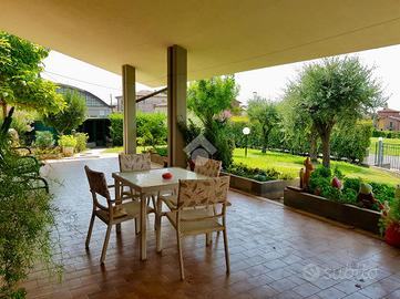 Sempre all'esterno, si trova un porticato di 90 mq ed un giardino privato piantumato di circa 500 mq dotato di impianto di irrigazione.