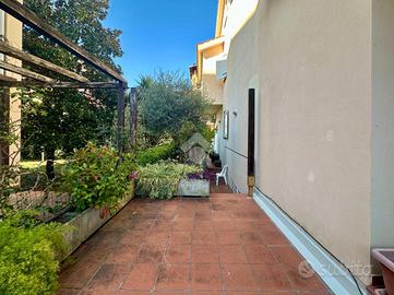 Entrando troviamo il primo livello composto da comodo salone con camino e con uscita sul portico che ci conduce al giardino privato ben curato, perfetto per trascorrere giornate in compagnia di amici e parenti. Sempre su questo piano troviamo la cucina abitabile e il primo bagno.