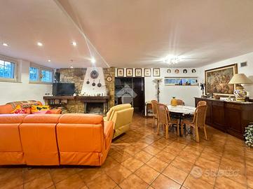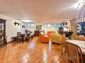 Il piano tavernetta, invece, è composto da ampio salone, anch'esso con camino; anche qui troviamo una comoda cucina completa di forno a legna e barbecue, e un bagno. Da questa zona accediamo anche al locale garage, attualmente adibito come zona lavanderia con una camera attualmente utilizzata come studio.