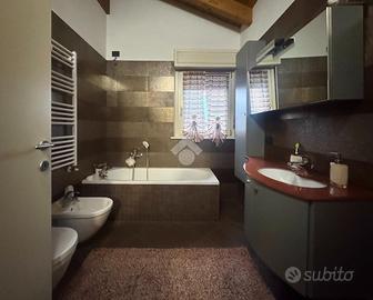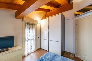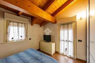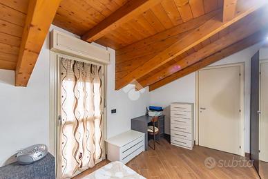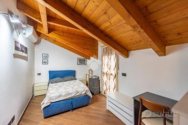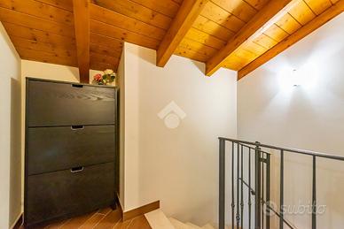 I piani sono collegati da una comoda scala interna, e la zona notte, progettata per massimizzare comfort e privacy, è composta da tre camere da letto e un elegante bagno dotato di vasca. Il piano notte è mansardato con travi a vista, aggiungendo un tocco di charme e calore agli ambienti.