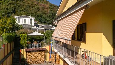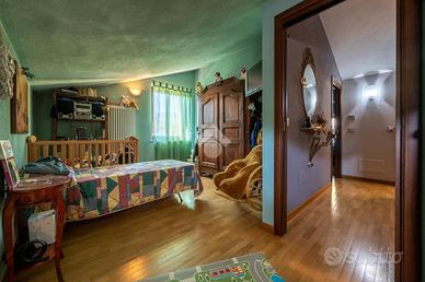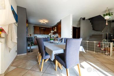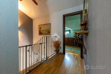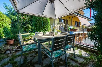 Al piano terra si trova un luminoso soggiorno e una cucina spaziosa che si affacciano sul giardino privato, ideale per momenti di relax all'aperto e un primo bagno dotato di vasca e doccia.