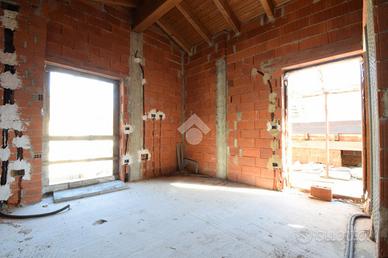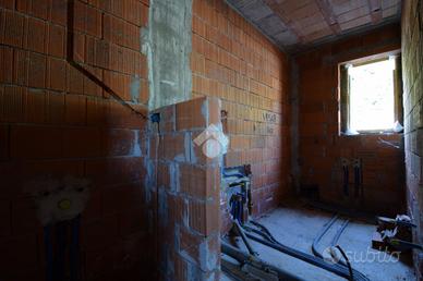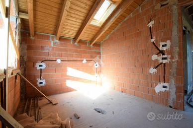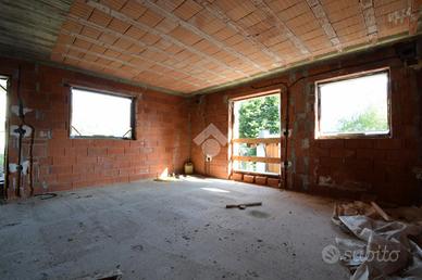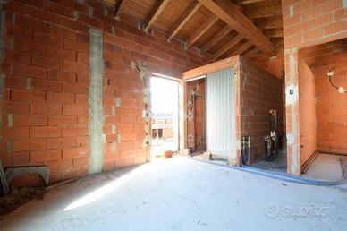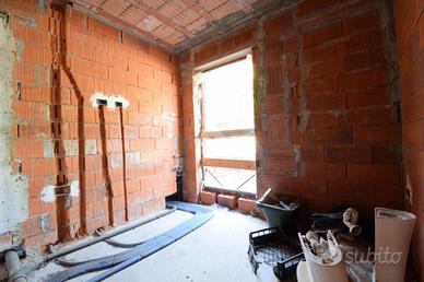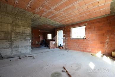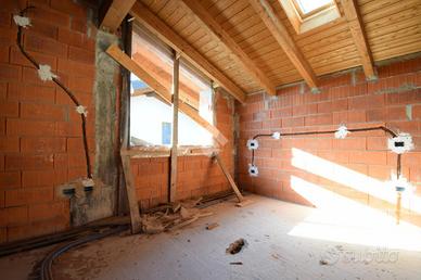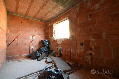 Il progetto prevedeva la realizzazione di un grande soggiorno con cucina a vista, uno studio ed un bagno al piano terra, due camere, un salotto (terza camera) bagno e terrazzo al piano primo. Il piano interrato avrebbe dovuto essere diviso in una zona deposito/taverna ed una lavanderia, oltre al garage doppio. La struttura è completa e gli impianti sono già abbozzati, permettendo di ultimare i lavori secondo le proprie esigenze.