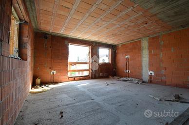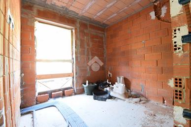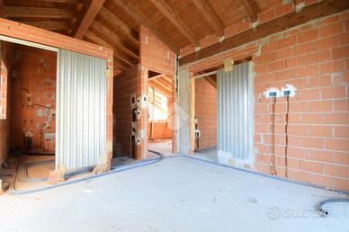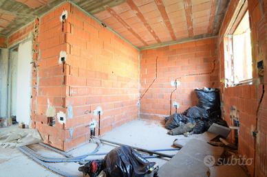 Il progetto prevedeva la realizzazione di un grande soggiorno con cucina a vista, uno studio ed un bagno al piano terra, due camere, un salotto (terza camera) bagno e terrazzo al piano primo. Il piano interrato avrebbe dovuto essere diviso in una zona deposito/taverna ed una lavanderia, oltre al garage doppio. La struttura è completa e gli impianti sono già abbozzati, permettendo di ultimare i lavori secondo le proprie esigenze.