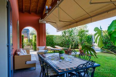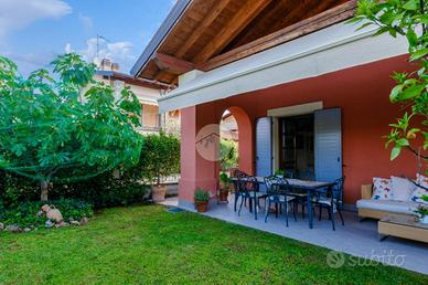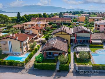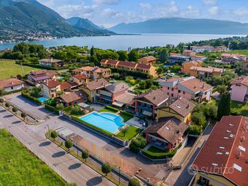 Villa di testa in residence con piscina. In un piccolo e curato residence con piscina, nel cuore di Portese, proponiamo una splendida villa di testa edificata nel 2006, caratterizzata da ambienti luminosi, ottime finiture e da una piacevole sensazione di privacy. La proprietà, dotata di ingresso indipendente, si apre su un giardino privato impreziosito da un ampio portico con travi a vista, ideale per vivere gli spazi esterni in totale relax e con accesso diretto alla piscina condominiale. All'interno, il piano terra accoglie una grande zona giorno open-space con soggiorno e cucina, ambienti ben distribuiti e resi accoglienti da un elegante camino in marmo. Completa il piano un bagno padronale con box doccia e una spaziosa camera matrimoniale. Salendo al piano primo mansardato, troviamo un raffinato bagno con vasca di design e un'ampia stanza attualmente utilizzata come area relax, perfettamente adattabile a camera da letto padronale. Nel piano interrato sono presenti una terza camera matrimoniale, un ulteriore bagno, la lavanderia e un comodo collegamento diretto al box doppio. La proprietà dispone inoltre di un posto auto coperto privato e di una cantina. Una soluzione elegante e completa, ideale sia come abitazione principale sia come casa vacanze, in una delle zone più ricercate del Lago di Garda